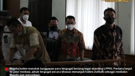 Sidang ke 4 – Penetapan Hakim PN Pekanbaru, 7 Oktober 2021—Majelis Hakim Dahlan, Tommy Manik dan Zefri Mayeldo Harahap buka sidang perdata perkara...