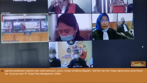 Pekanbaru, Kamis 7 Oktober 2021—Senarai menilai, terdakwa Mayjafri, Hefrizal dan Nur Cahya Agung, terbukti bersalah dalam pengelolaan dana premi...