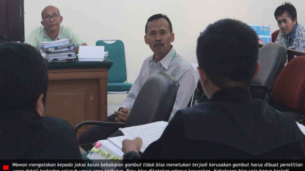 Sidang ke-12 – Agenda Pemeriksaan Ahli dari Terdakwa PN Pelalawan, Kamis 27 Februari 2020—Penasihat Hukum terdakwa PT Sumber Sawit Sejahtera (SSS) dan Alwi Omri Harahap menghadirkan Wawan, ahli kerusakan dan pencemaran lingkungan, tanah dan sumberdaya lahan dari Fakultas Pertanian...