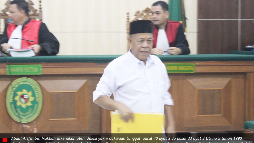 Sidang ke-2 – Agenda Pembacaan Dakwaan PN Pelalawan, Selasa 7 Januari 2020—Hakim Bambang Setyawan, Nurrahmi dan Rahmat Hidayat gelar sidang pidana perdana perusakan hutan, terdakwa Abdul Arifin. Penuntut Umum Kejaksaan Negeri Pelalawan Marthalius bacakan dakwaan. Abdul Arifin...