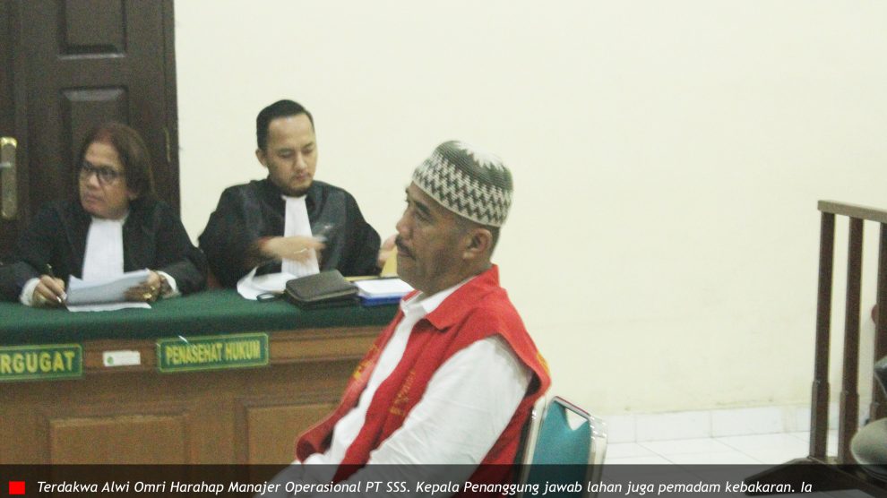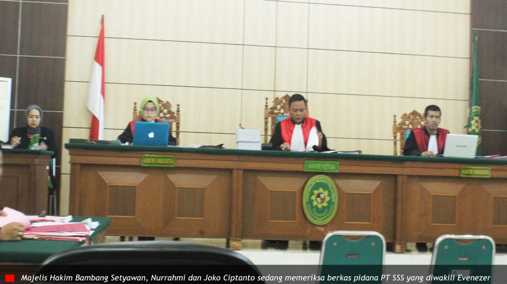 Sidang ke -1 – Pembacaan Dakwaan Pengadilan Negeri Pelalawan, Kamis 12 Desember 2019—Majelis Hakim Bambang Setyawan, Nurrahmi dan Joko Ciptanto, gelar sidang pidana kebakaran hutan dan lahan (Karhutla) PT Sumber Sawit Sejahtera (SSS). Perusahaan diwakili Direktur Utama Evenezer...