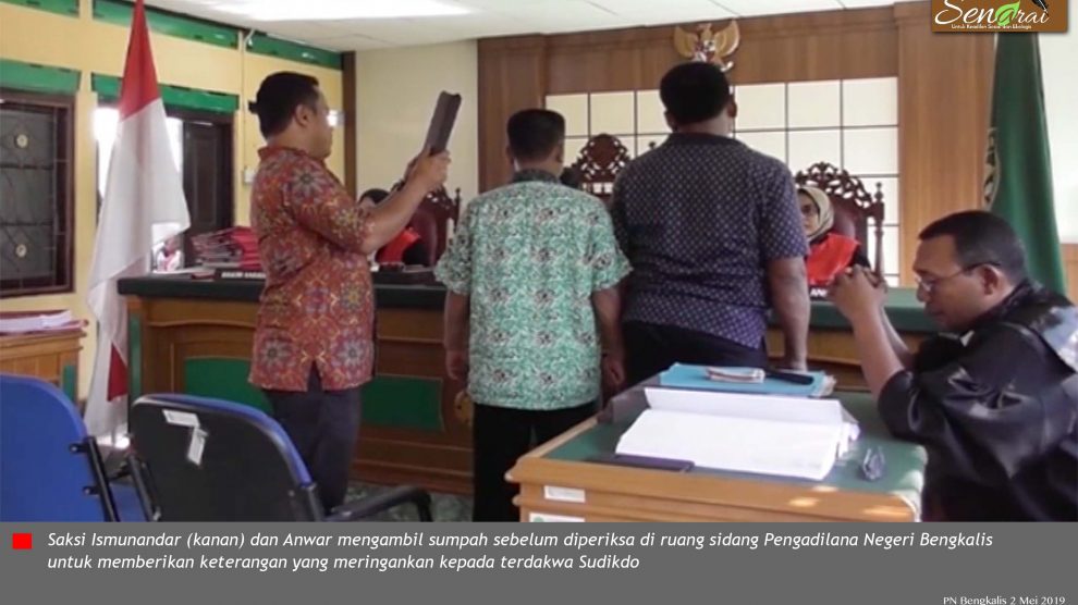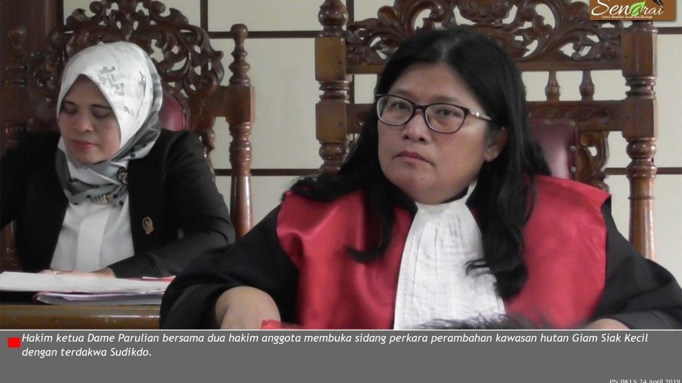 Video PN Bengkalis 24 April 2019, hakim ketua Dame Parulian bersama dua hakim anggota membuka sidang perkara perambahan kawasan hutan Giam Siak Kecil dengan terdakwa Sudikdo. Agenda sidang kali ini penuntut umum hadirkan Serta ahli Palnologi Syafrudin Prawiranegara, Nur Islami, Supriadi...