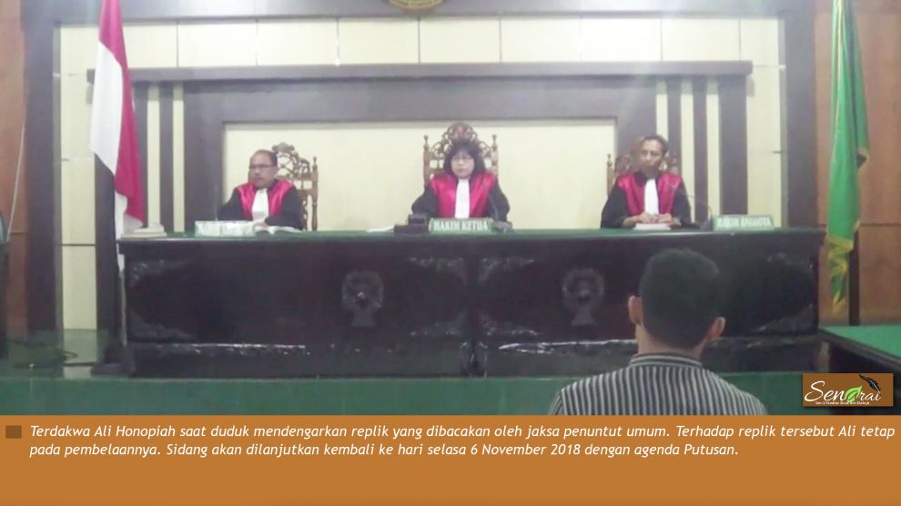 Video PN Pekanbaru, Selasa 6 November 2018—Ketua Majelis Hakim Dahlia Panjaitan membaca putusan terhadap terdakwa M Ali Honopiah sejak awal hingga selesai. “Kita bacakan penting-penting saja. Sidang Tipikor lain masih banyak.” Majelis hakim menyatakan, Ali terbukti bersalah melanggar...