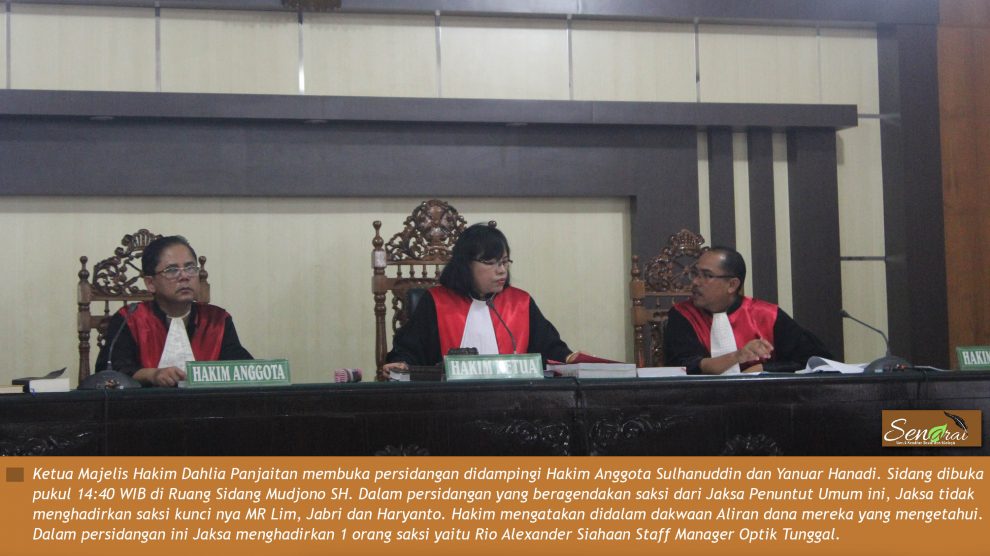 Video PN Pekanbaru, Selasa 07 Agustus 2018—Ketua Majelis Hakim Dahlia Panjaitan membuka persidangan didampingi Hakim Anggota Sulhanuddin dan Yanuar Hanadi. Dahlia Panjaitan bertanya kepada Penuntut Umum Hamiko mengapa saksi kunci belum juga dihadirkan yaitu MR Lim, Jabri dan Haryanto...