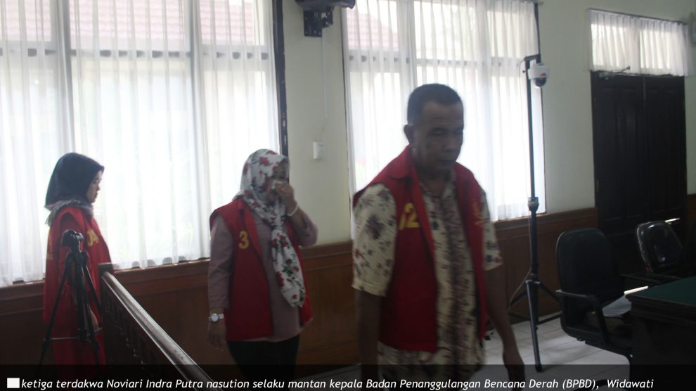 Video PN Pekanbaru, 9 Agustus 2018 –Hakim ketua Bambang Miyanto membuka sidang perkara tindak pidana korupsi dengan ketiga terdakwa Noviari Indra Putra Nasution (mantan Kepala Badan Penanggulangan Bencana Derah (BPBD) Tahun 2014), Suherlina (Kepala Seksi Kedaruratan dan Logistik BPBD...