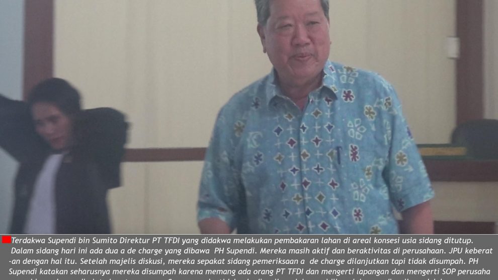 Video PN Siak, Senin 25 Juni 2018—usai ramadhan dan libur lebaran, majelis hakim Lia Yuwannita, Risca Fajarwati dan Dewi Hesti Indria kembali membuka sidang perkara pidana kebakaran hutan dan lahan, dengan terdakwa PT Triomas Forestry Development Indonesia (TFDI) diwakili Supendi selaku...
