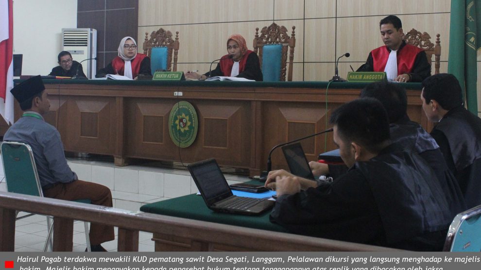 PN Pelalawan, Selasa 13 Maret 2018—majelis hakim kembali membuka sidang perkara pidana perkebunan, dengan terdakwa KUD Pematang Sawit yang diwakili Hairul Pagab, sebagai wakil ketua.