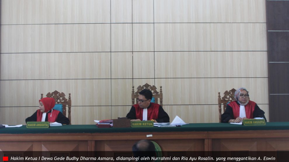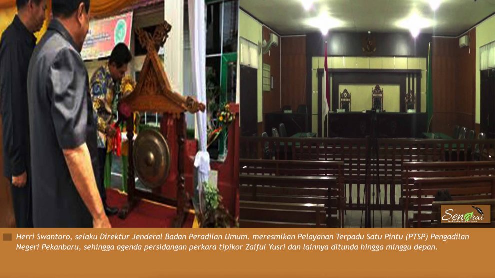Pekanbaru 12 Desember 2017, Majelis hakim Pengadilan Negeri Pekanbaru menunda sidang tindak pidana korupsi perkara peneritan sertifikat dalam kawasan Hutan Produksi Terbatas (HPT) Taman Nasional Tesso Nilo (TNTN) Desa Buluh Cina Kecamatan Siak Hulu Kabupaten Kampar.