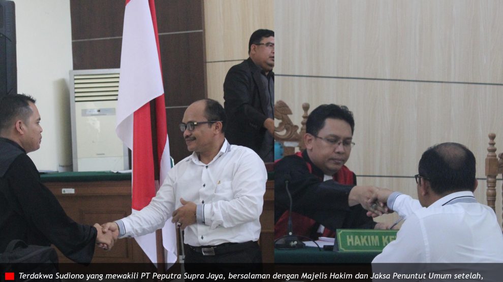 PN Pelalawan, Senin 27 November 2017—ketua majelis hakim I Dewa Gede Budhy Dharma Asmara bersama dua anggota Nur Rahmi dan A. Eswin Sugandhi Oetara, membuka sidang perkara pidana atas nama terdakwa PT Peputra Supra Jaya, pukul dua siang.