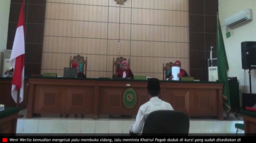 Video PN Pelalawan, Kamis 30 November 2017—penasihat hukum Libertus Jehami, Edy Sutrisno dan Azis Fahmi menunggu di mejanya. Penuntut umum Himawan Saputra juga begitu. Mereka memakai toga hitam. Tak lama kemudian, ketua majelis hakim Weni Warlia bersama Nur Rahmi dan Riau Ayu Rosalin...