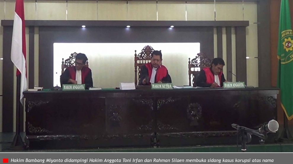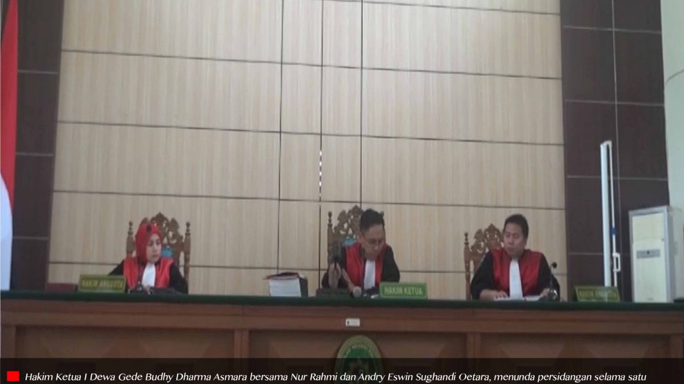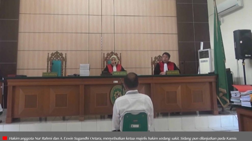 PN Pelalawan, Senin 13 November 2017—dua orang majelis hakim, Nur Rahmi dan A. Eswin Sugandhi Oetara, memasuki ruang sidang cakra pukul 2 siang. Tak seperti biasanya, ketua majelis hakim I Dewa Gede Budhy Dharma Asmara, tak ikut bersama mereka.