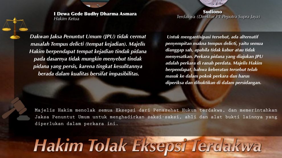 PN Pelalawan, 31 Juli 2017— Pukul 10.57 Hakim Ketua, I Dewa Gede Budhy Dharma Asmara membuka sidang yang didampingi Nurrahmi dan Andry Eswin Sugandi Oetra dengan agenda pembacaan putusan sela yang sempat tertunda minggu lalu karena terdakwa ada tugas keluar kota. Setelah Hakim Ketua, I...