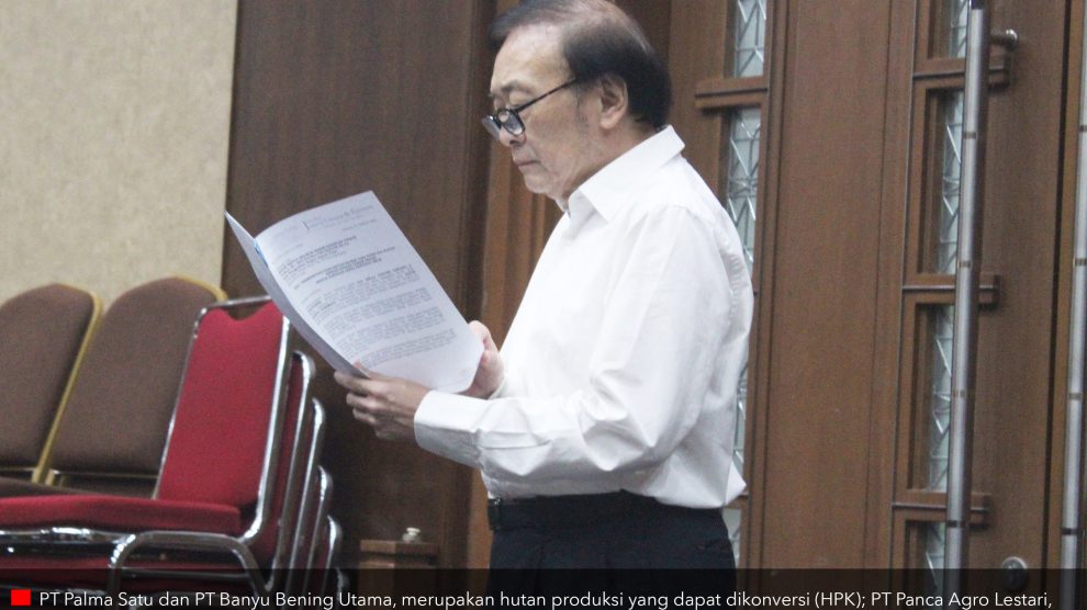 Pengadilan Tipikor Jakarta Pusat, Senin 31 Oktober 2022—Kepala Balai Pemantapan Kawasan Hutan (BPKH) Wilayah XIX Pekanbaru, Sofyan, menjelaskan seluruh kebun sawit perusahaan terdakwa Surya Darmadi berada dalam kawasan hutan. Areal Duta Palma Grup: PT Palma Satu dan PT Banyu Bening Utama...