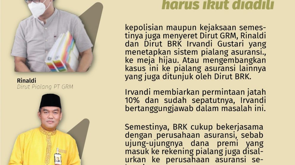 Pekanbaru, Kamis 7 Oktober 2021—Senarai menilai, terdakwa Mayjafri, Hefrizal dan Nur Cahya Agung, terbukti bersalah dalam pengelolaan dana premi asuransi. Ketiganya mengakui, meminta fee 10 persen atas penunjukan PT Global Risk Management (GRM) sebagai pialang asuransi oleh Direktur Utama...