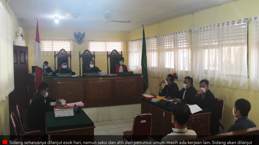 Sidang ke 6— Saksi PN Rengat, 4 Oktober 2021—Hakim Nora Gaberia Pasaribu bersama hakim anggota Maharani Debora Manullang dan Mochamad Adib Zain kembali pimpin sidang kebakaran hutan dan lahan (Karhutla) PT Gandaerah Hendana diruang Cakra. Terdakwa PT Gandaerah Hendana (GH) dihadiri Jeong...