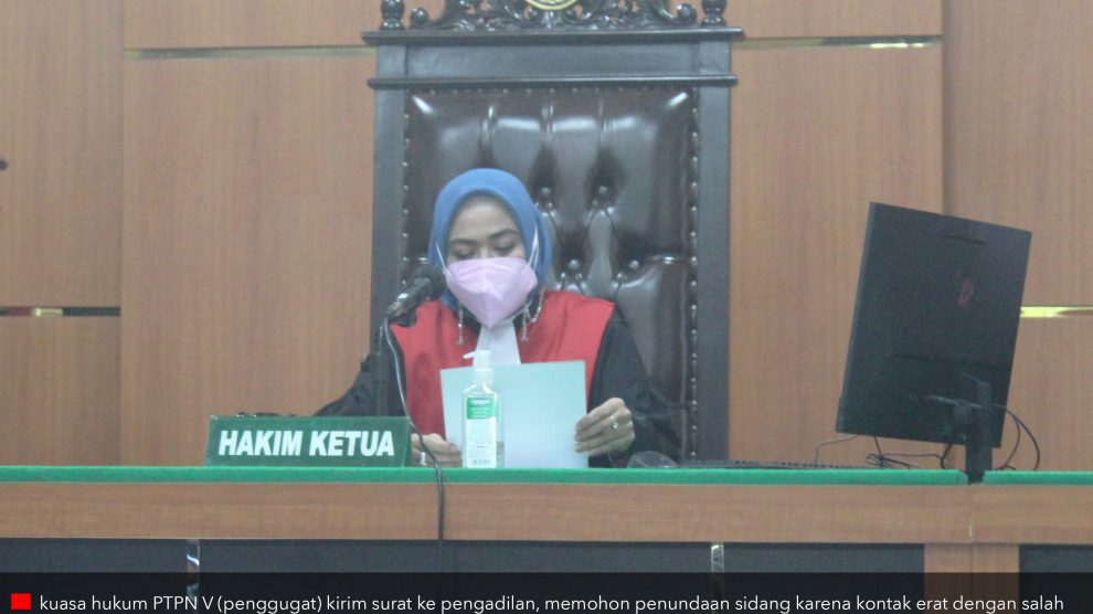 Sidang ke 11 – Tunda PN Bangkinang, Rabu, 14 Juli 2021—Ketua Majelis Hakim Riska Widiana didampingi anggotanya Sofya Nisra dan Ferdi, mengundur pembacaan putusan perkara gugatan melawan hukum antara PT Perkebunan Nusantara V dengan 14 masyarakat adat Pantai Raja. Beberapa hari sebelumnya...