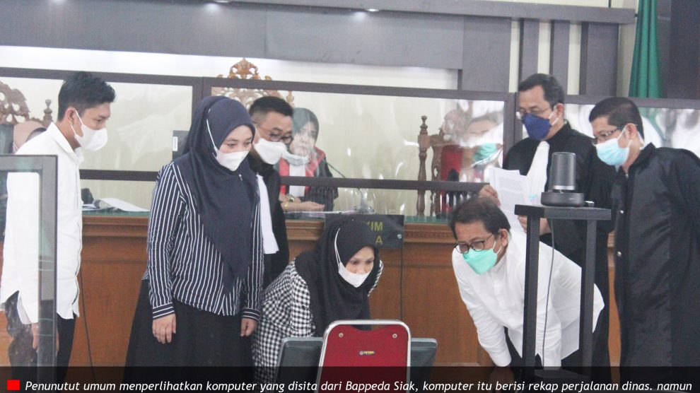 Sidang ke 11—pemeriksaan saksi Pengadilan Tipikor Pekanbaru, Senin 24 Mei 2021—Majelis Hakim Lilin Herlina bersama anggotanya Iwan Irawan dan Darlina Darwis, kembali gelar sidang korupsi atasnama terdakwa Yan Prana Jaya Indra Rasyid, Kepala Badan Perencanaan dan Pembangunan Daerah...