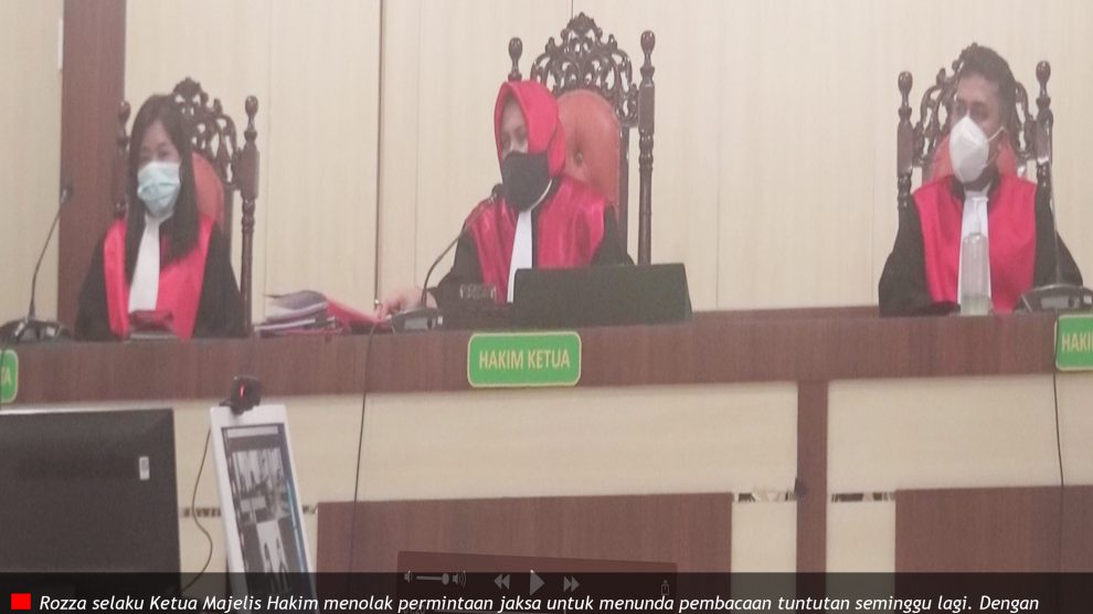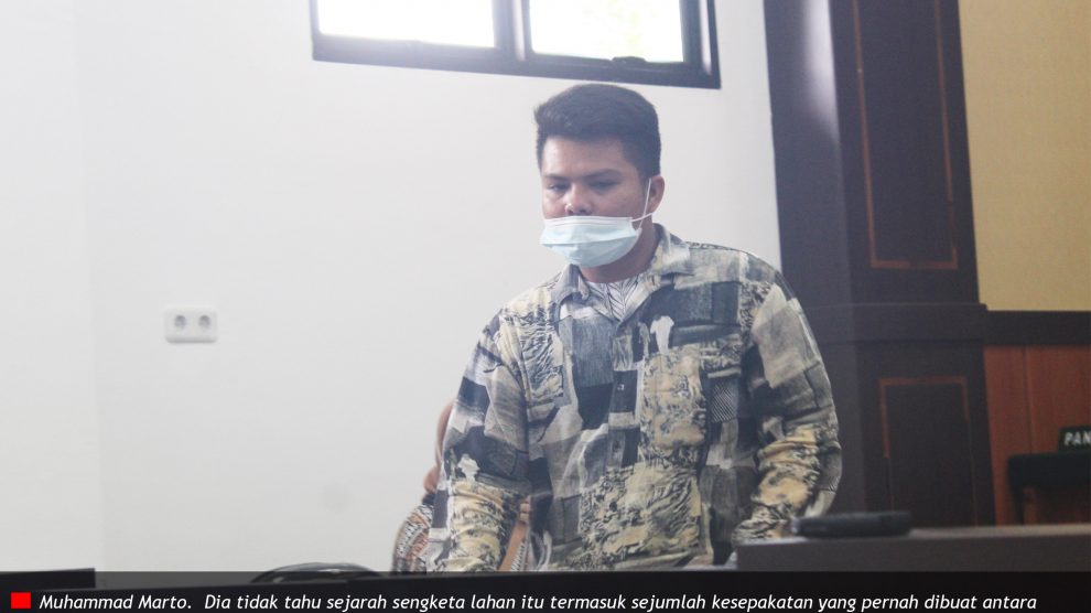 Sidang ke 4—saksi PN Bangkinang, Rabu, 28 April 2021—Ketua Majelis Hakim Riska Widiana didampingi hakim anggota Syofia Nisra dan Ferdi, membuka sidang perdata gugatan melawan hukum antara penggugat PT Perkebunan Nusantara (PTPN) V melawan tergugat 14 warga Desa Pantai Raja, Kecamatan...