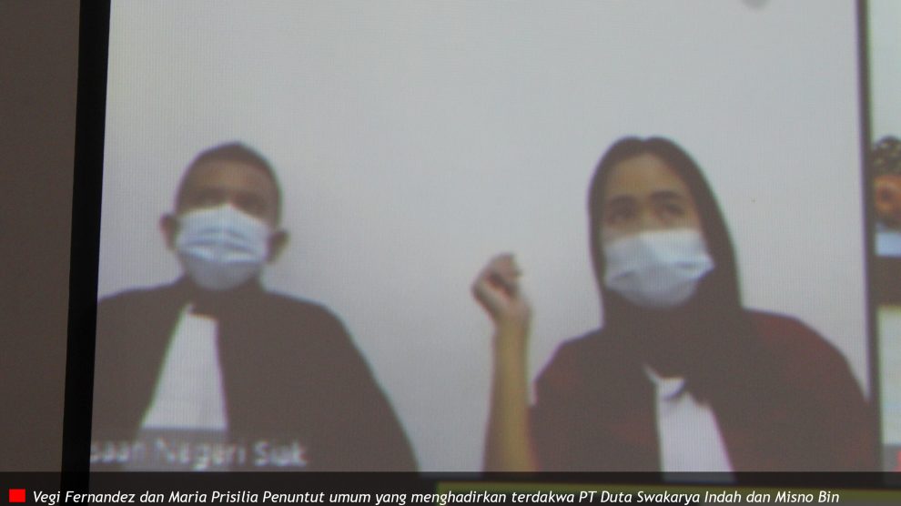 Sidang ke 2—lanjutan dakwaan PN Siak, Senin 25 Januari 2021—Ketua Majelis Hakim Rozza El Afrina didampingi dua anggota, Selo Tantular dan Farhan Mufti Akbar, memimpin sidang pidana Kebakaran Hutan dan Lahan (Karhutla), terdakwa Misno bin Karyorejo, Direktur PT Duta Swakarya Indah (DSI)...