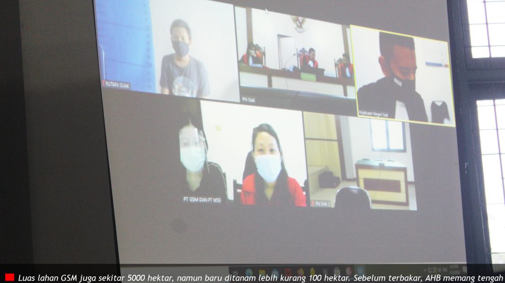 Sidang ke 11—keterangan saksi PN Siak, Selasa, 3 November 2020—Majelis Hakim Acep Sopian Sauri, Pebrina Permata Sari dan Farhan Mufti Akbar, memimpin sidang pidana lingkungan hidup, terdakwa PT Gelora Sawita Makmur (GSM) diwakili Direktur Utama Ho Hariaty dan PT Wana Sawit Subur Indah...