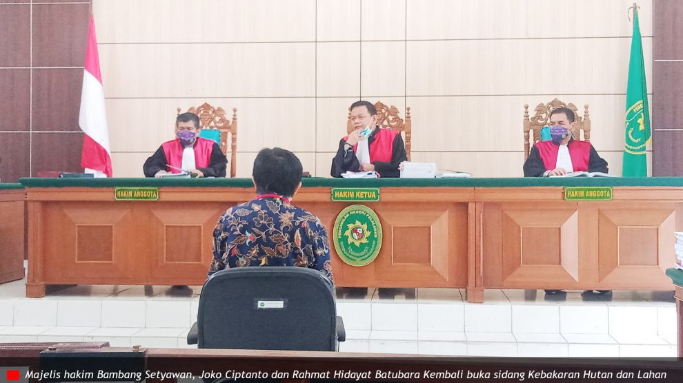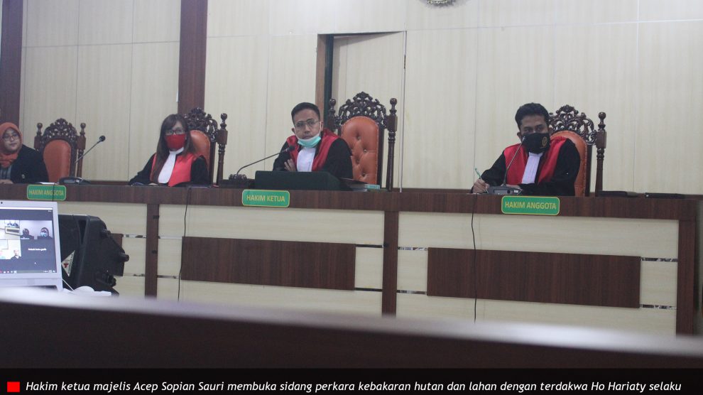 Sidang ke 14 : Agenda Saksi PN Pelalawan, 15 September 2020—Majelis hakim Bambang Setyawan, Joko Ciptanto dan Rahmat Hidayat Batubara Kembali buka sidang Kebakaran Hutan dan Lahan atau Karhutla dengan Terdakwa PT Adei Plantation & Industry. Perusahaan diwakili oleh Goh Keng Ee...