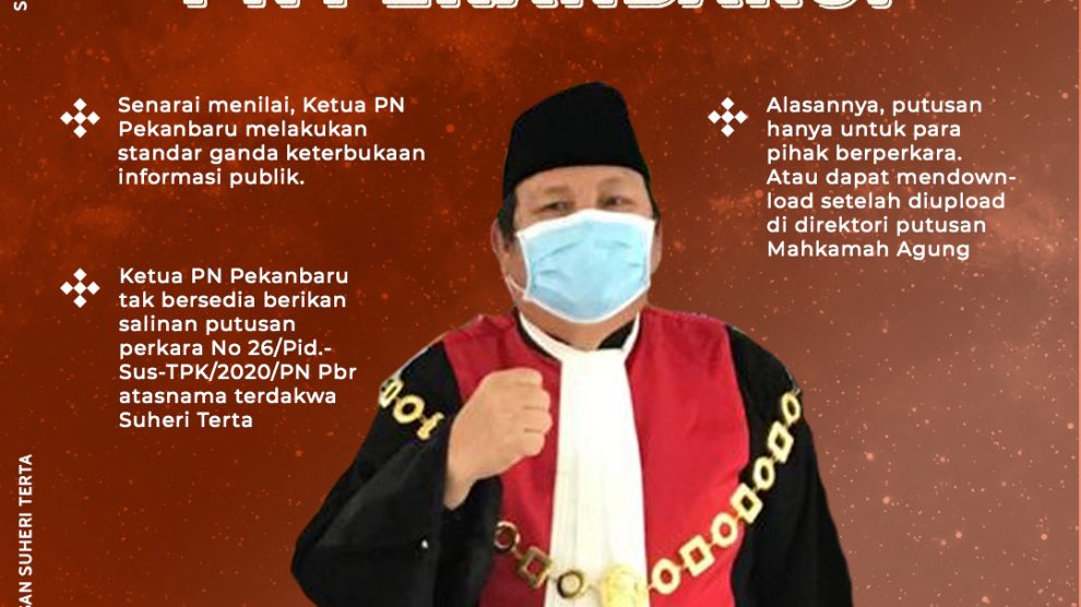 Pekanbaru, Jumat, 11 September 2020—Senarai menilai, Ketua PN Pekanbaru melakukan standar ganda keterbukaan informasi publik, terkait permintaan putusan perkara No 26/Pid.Sus-TPK/2020/PN Pbr atasnama terdakwa Suheri Terta. “Padahal, Senarai sudah sering meminta berkas putusan korupsi...
