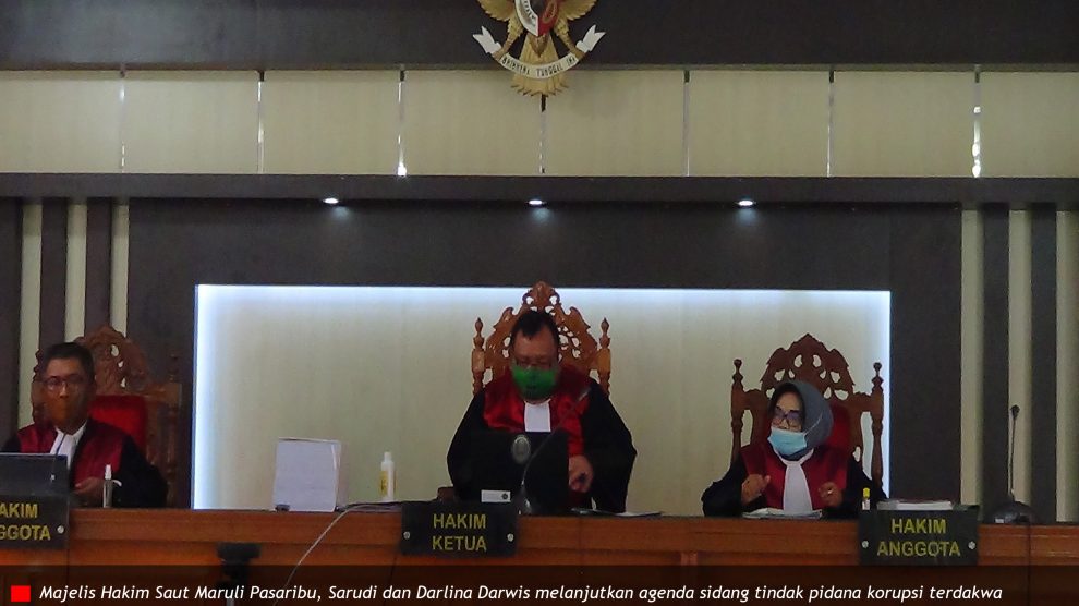 Sidang ke-14 Agenda Pembacaan Tuntutan PN Pekanbaru, Jumat, 28 Agustus 2020–Majelis Hakim Saut Maruli Tua Pasaribu, Sarudi dan Darlina Darwis, melanjutkan sidang tindak pidana korupsi, terdakwa Legal Manager PT Duta Palma Suheri Terta. Komisi Pemberantasan Korupsi menyatakan Suheri Terta...