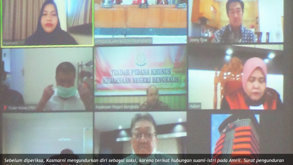Sidang ke 8: Agenda Pemeriksaan Saksi PN Pekanbaru, Kamis, 27 Agustus 2020—Majelis Hakim Lilin Herlina, Sarudi dan Poster Sitorus kembali menggelar sidang tindak pidana korupsi dan gratifikasi, terdakwa Bupati Bengkalis nonaktif Amril Mukminin. Penuntut Umum Komisi Pemberantasan Korupsi...