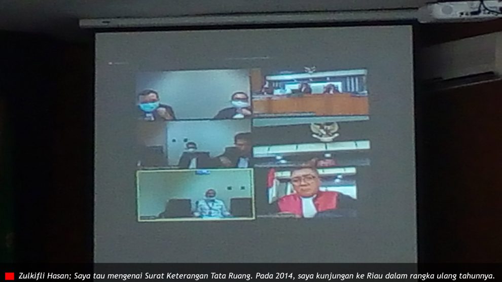Sidang ke 7 : Agenda Pemeriksaan Saksi PN Pekanbaru, 13 Agustus 2020—Majelis hakim Lilin Herlina, Sarudi dan Poster Sitorus buka kembali sidang perkara 27/Pid.Sus-TPK/2020/PN Pbr. Terdakwa Amril Mukminin dalam kasus korupsi dari PT Citra Gading Asritama (CGA) dan gratifikasi dari PT...