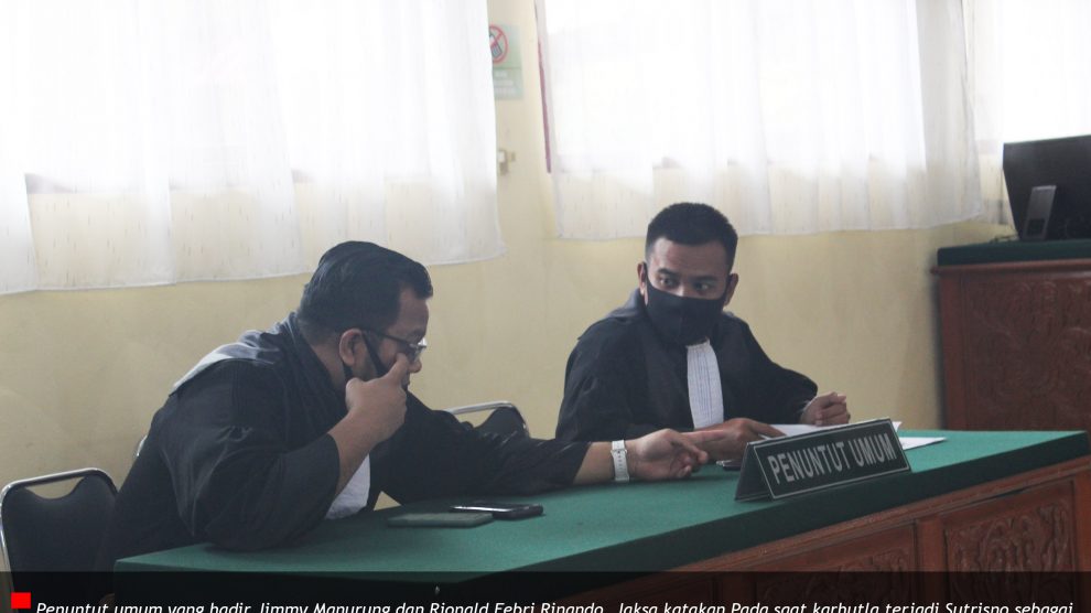 Sidang ke 20 -Agenda putusan Sutrisno dan Pledoi PT TI. PN Rengat, 6 Juli 2020—-Ketua majelis hakim Omori Rotama Sitorus bersama anggota Maharani Debora Manullang dan Immanuel Marganda Putra Sirait buka kembali sidang perkara kebakaran hutan dan lahan (karhutla) dengan terdakwa...