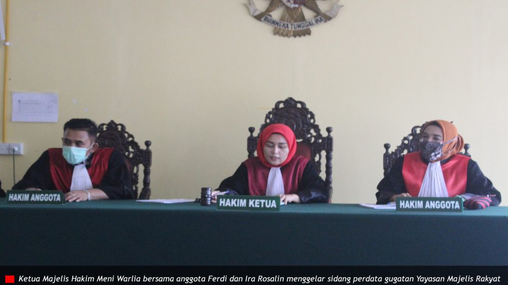 PN Bangkinang, Kamis 11 Juni 2020–Ketua Majelis Hakim Meni Warlia bersama anggota Ferdi dan Ira Rosalin kembali gelar sidang gugatan Yayasan Majelis Rakyat Riau (MRR) melawan PT Padasa Enam Utama, Kementerian Lingkungan Hidup dan Kehutanan turut tergugat I, Balai Pengamanan dan...