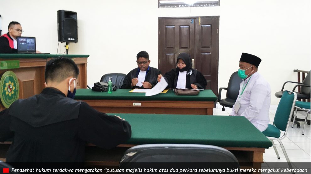 Sidang ke 17 – Agenda pemeriksaan terdakwa dan tuntutan PN Rengat, Selasa 16 Juni 2020—Majelis hakim Omori Rotama Sitorus, Maharani Debora Manullang dan Immanuel Marganda Putra Sirait kembali buka sidang kebakaran hutan dan lahan untuk terdakwa PT Teso Indah (TI) dan Asisten Kepala...