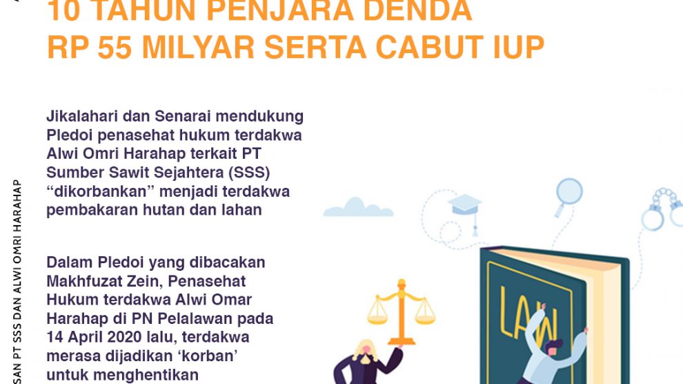 Pekanbaru, Senin 20 April 2020—Jikalahari dan Senarai mendukung Pledooi penasehat hukum terdakwa Alwi Omri Harahap terkait PT Sumber Sawit Sejahtera (SSS) “dikorbankan” menjadi terdakwa pembakaran hutan dan lahan. “Ibarat kata orang bijak, orang makan nangka kita kena getahnya atau dengan...